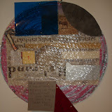 liet mijn 'la voix humaine' zien (naar het toneelstuk met Halina Reijn, die nog één keer haar ex aan de lijn heeft). Ik heb een collage gemaakt op basis van mijn laatste telefoongesprek met C. Als laatste (?) van de liefdesserie. Cirkels vanwege eiland. Het doet Harm ook denken aan een klok, een andere kant kan weer naar boven komen, het kan zo weer veranderen. Mara dacht vanwege de vorm aan een langspeelplaat. Ik had dingen zo letterlijk genomen dat het niet meer letterlijk is, bovendien weet de toeschouwer het niet als ik het niet vertel. Maar ze gaan wel kijken, vermoeden en puzzelen. Ik wilde naast cirkels ook met transparantie, uitsteeksels, meer lagen en symbolen werken en dat het persoonlijke universeel wordt. Doordat ik tijdens het telefoongesprek de woorden: 'druk', 'honger', 'liefde' en 'benauwd' had opgeschreven was het wel bijzonder dat de krant ook over 'samenleving volledig mislukt' 'liefde heb je nodig' ging. Gebruik maken van toeval en ordening. Het is een verwerking; functioneel zoals Harm zei. Mij wordt aangeraden niet te wachten met werken op een dramatische gebeurtenis, maar alledaagse gebeurtenissen, een situatie, of moment te gebruiken om uit te vergroten, te dramatiseren bijvoorbeeld.