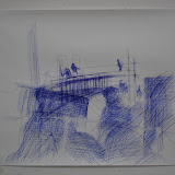 We startte de bespreking met Kims werk. We notuleerden om de buurt voor elkaar. Ik voor Kim. Notulen aan Matthijs meegegeven om te scannen dus nu doe ik het uit het hoofd. Wat ik me vooral herinner van de bespreking is dat Kim blij is dat ze aan het werk is, wel veel maakt, maar dat ze niet tevreden is over het resultaat en ook niet weet waarmee ze bezig is. Ze had drie verhaaltjes gemaakt in tekeningen: bouw ijdock, werkdag, avondrituelen, 2 tekeningen met balpen en tekeningen met gekleurd krijt (veel geel) in allerlei formaten. plus werk in schetsboekjes. Bij groot werken weet ze niet hoe ze het kan beschermen en presenteren. Het belangrijkste is de stroom op gang houden en je daar niet druk over te maken. Haar thema is een plek, beweging, momentopname, fysiek werken. Opeenvolging van momenten, rust en onrust. Kim wordt aangeraden weer groot te werken en/of te gaan filmen.